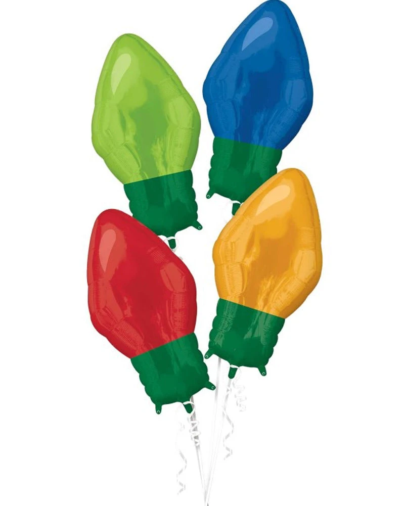 Give your Christmas decorations the bright colours it needs, as you blow up and tie this Christmas Light Bulbs Balloon Kit. These four self-sealing balloons come in the shape of large light bulbs with dark green bases and come in colours of red, green, yellow and blue. Pair these balloons with our other range of Christmas balloons and other party supplies.