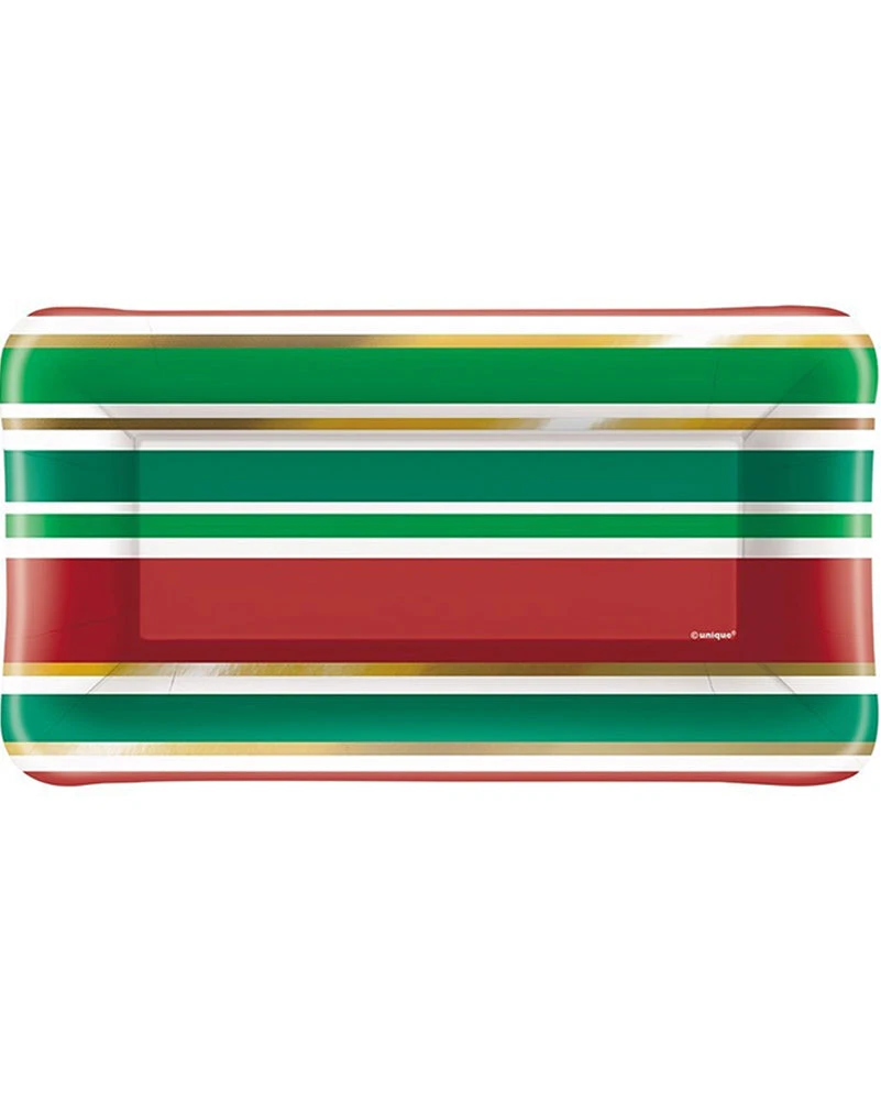 Grab these Chic Christmas 23cm Foil Stamped Rectangle Paper Plates Pack of 8 and make sure your Christmas party tableware is decked out in this super chic style. The rectangular plate is perfect for your appetisers and is designed in a red, green and white stripe with gold foil stamped stipes that make it look like a peppermint candy cane. Combine with our range of Christmas party supplies including party cups, party plates, tablecovers and more.