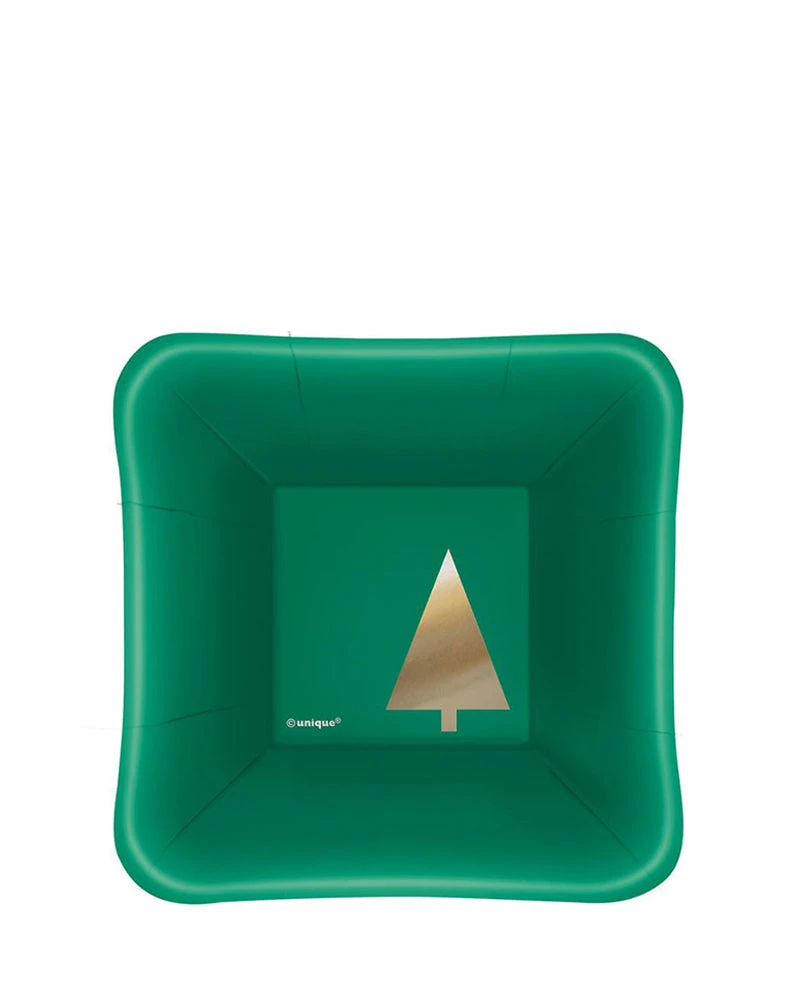 Make sure your guests eat in style at your Christmas party with these Chic Christmas Foil Stamped 13cm Square Paper Plates Pack of 8. The plates are perfect for appetisers and are green with a gold foil stamped tree. Combine with our range of Christmas party supplies including party cups, party plates, tablecovers and more.