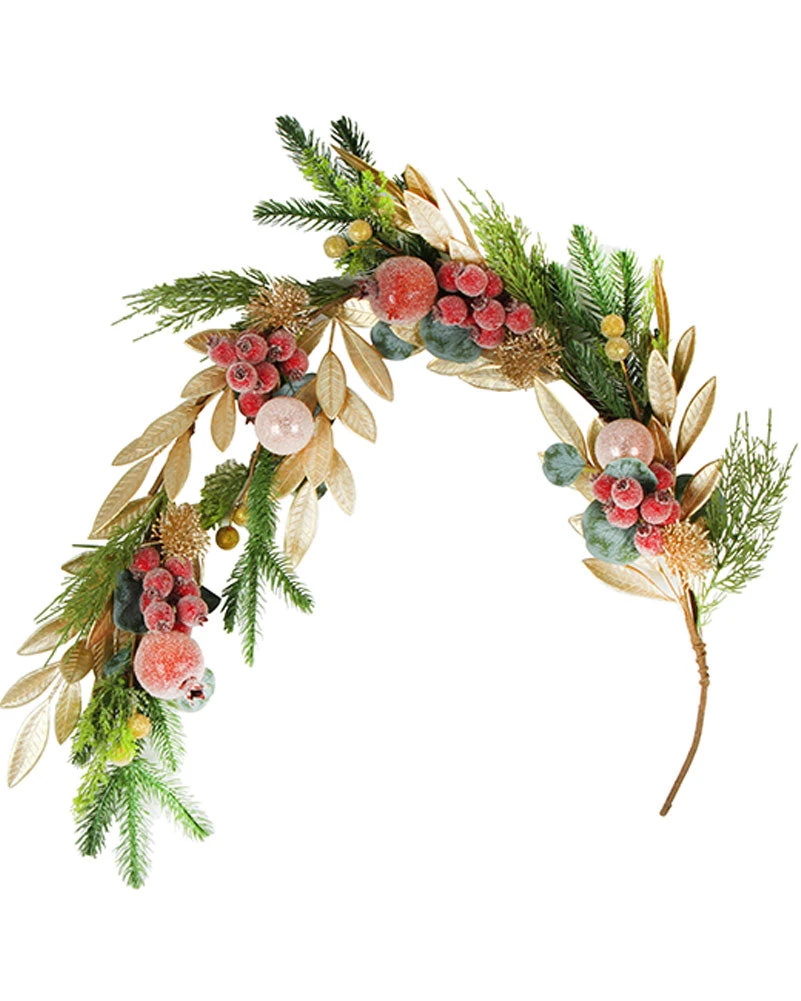 Be sure to add a fruity to your Christmas decor this year and add this Christmas Garland With Fruits 1.2m. The garland is artificial and comes as a branch featuring a mixture of leaves and pines with an array of different sized berries and round fruits. It is perfect for entwining with other garlands to hang up and display, to place on a mantle or even to use as a table centrepiece. Combine with our range of wonderful festive Christmas decorations including Christmas tree decorations, Christmas garlands, swags and more.