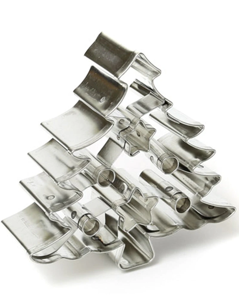 Add some fun to your Christmas baking with this Christmas Tree with Cutouts 8cm Cookie Cutter. Included is a high-quality tinplated steel cookie cutter in the shape of a Christmas tree with mini Christmas ornament cutouts.