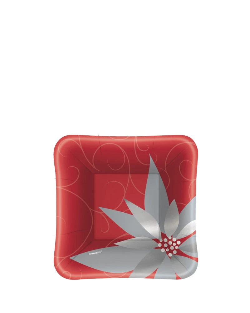 Get in the mood for a classic Christmas with this Elegant Christmas 13cm Paper Plates Pack of 8. Taking design inspiration from the classic Nordic style and colour of the celebration, this pack of plates will leave you yearning for snow and cocoa. With a silver print reminiscent of mistletoe leaves off centred on a red background, the only way this could be more cheery is by using it to serve a rum soaked fig pudding. Remember for a magical holiday season combine this with our range of Christmas themed party supplies including party cups, party plates, tablecovers and more.