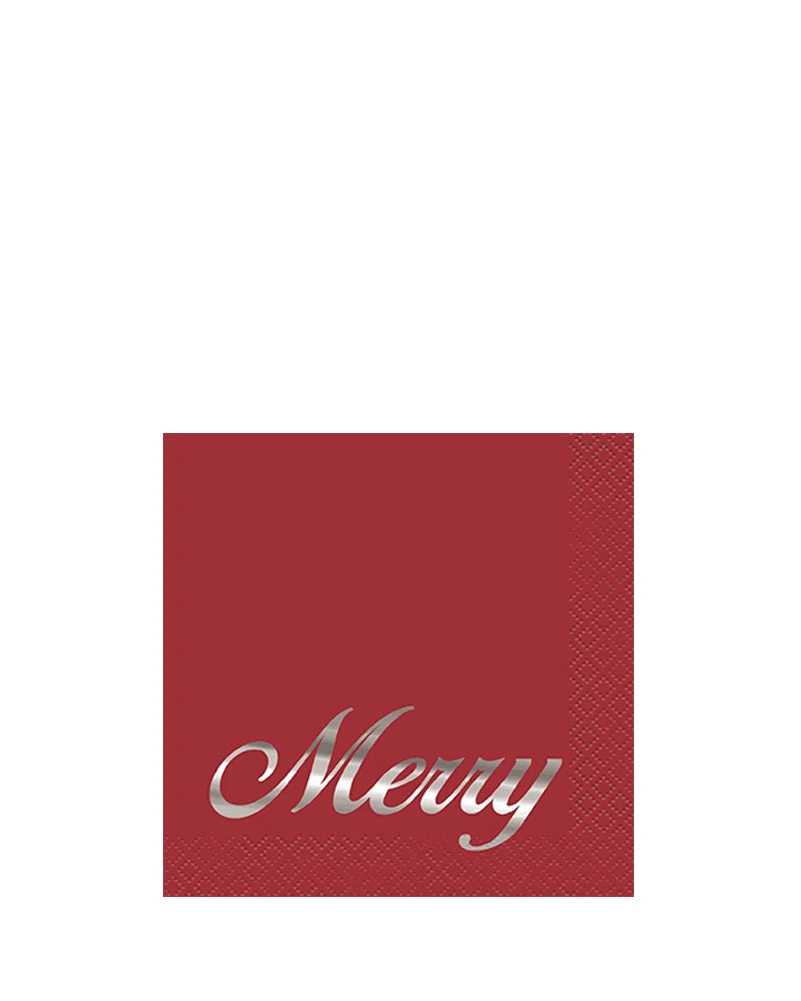 Drinks make everyone merrier, but just in case they don’t, remind everyone to stay merry these holidays with this Elegant Red Christmas Foil Stamped Beverage Napkins Pack of 16. These napkins are essential for keeping your tables clear of watermarks and reminding all your guests to stay merry with each sip! The napkins are red with the word “merry” stamped in foil. Combine with our range of Christmas party supplies including party cups, party plates, table covers and more.
