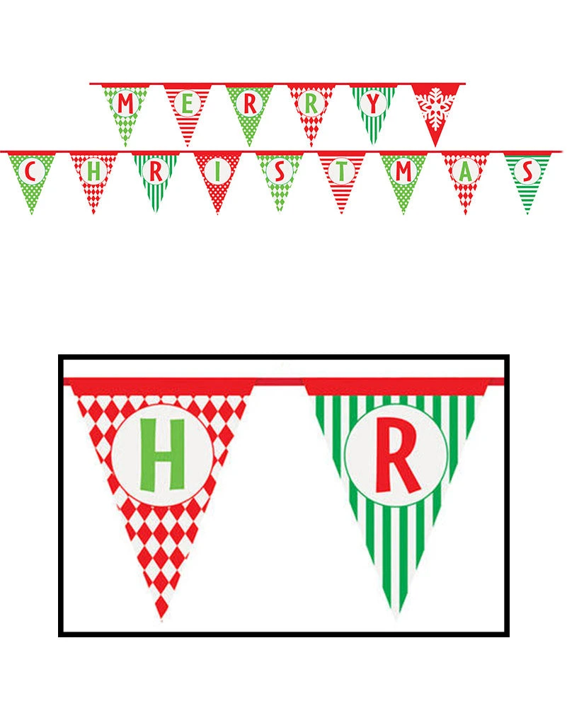 Wish everyone a Merry Christmas with this fantastic Merry Christmas Paper Flag Banner measuring 4.26m / 14ft long! Hang this above an archway, across a wall or out on the deck with some blue tac or tape. Combine with our range of Christmas party supplies including party cups, party plates, tablecovers and more.